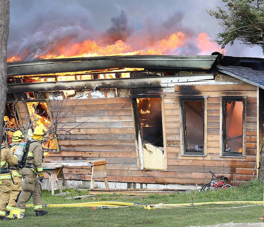 “It had flames coming out of pretty much every window when I pulled up,” said North Whidbey Fire and Rescue Chief John Clark, who was first to arrive at the scene after the call came in at 10:33 a.m.