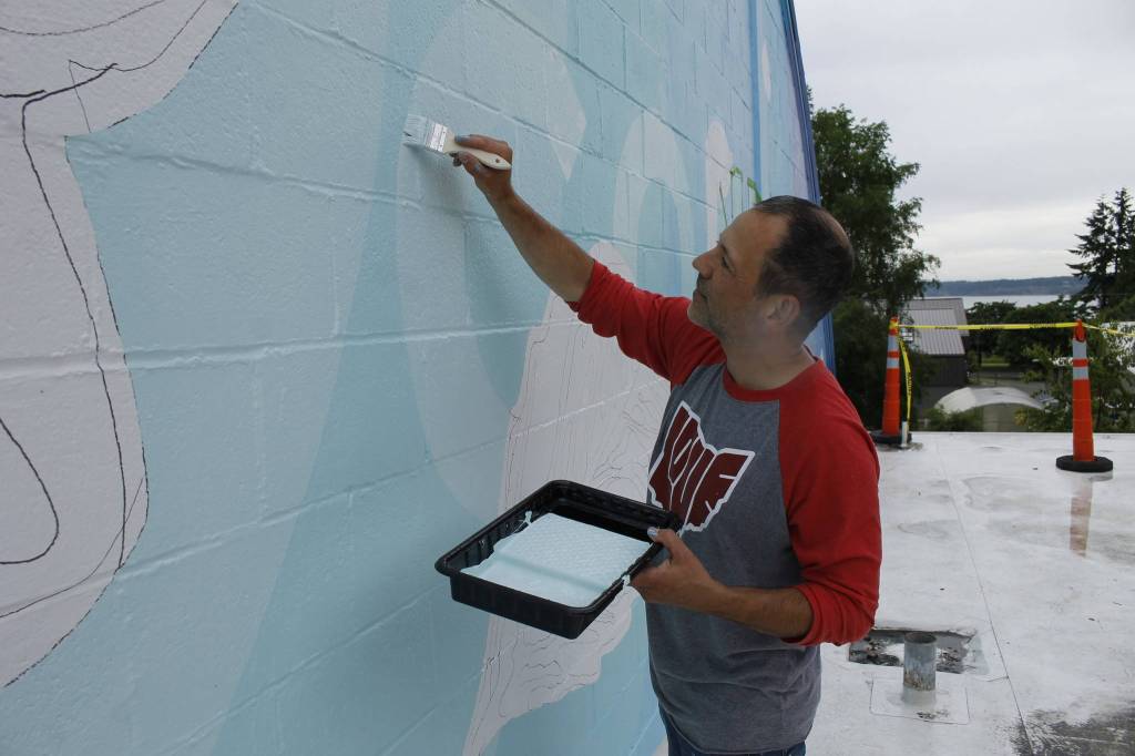 Jarvis arrived on Whidbey Island June 6. He has until the end of the month to complete the mural, which is just now entering its painting phase.
