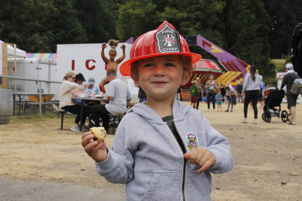 Out on the midway, while holding a scone, 2-year-old Carter Jones dances and sways to the music of a cover band performing on the main stage. This is the youngster’s first time at the Whidbey Island Fair.