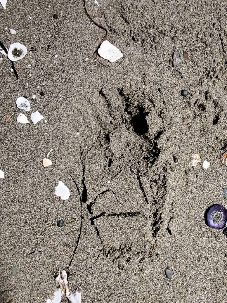 An image containing what looks like bear tracks in the sand was sent Sept. 15 to Ralph Downes, an enforcement officer for the state Department of Fish and Wildlife. The photo was taken on the shore near Brighton Beach Road, about half a mile up the coast from the Clinton ferry terminal.