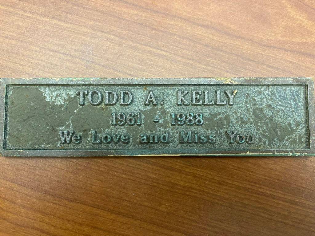 Kelly’s plaque reads, “We love and miss you,” and is inscribed with the years 1961-1988. Armstrong said he was not able to find any information about Kelly.
