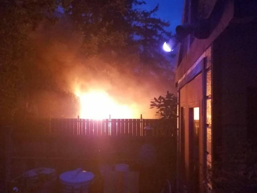 According to a Facebook post on Alert Whidbey 2.0, Regatta Drive was temporarily detoured at the Torpedo Road and Northeast 5th Avenue intersections. The fire did not spread to any surrounding houses.
