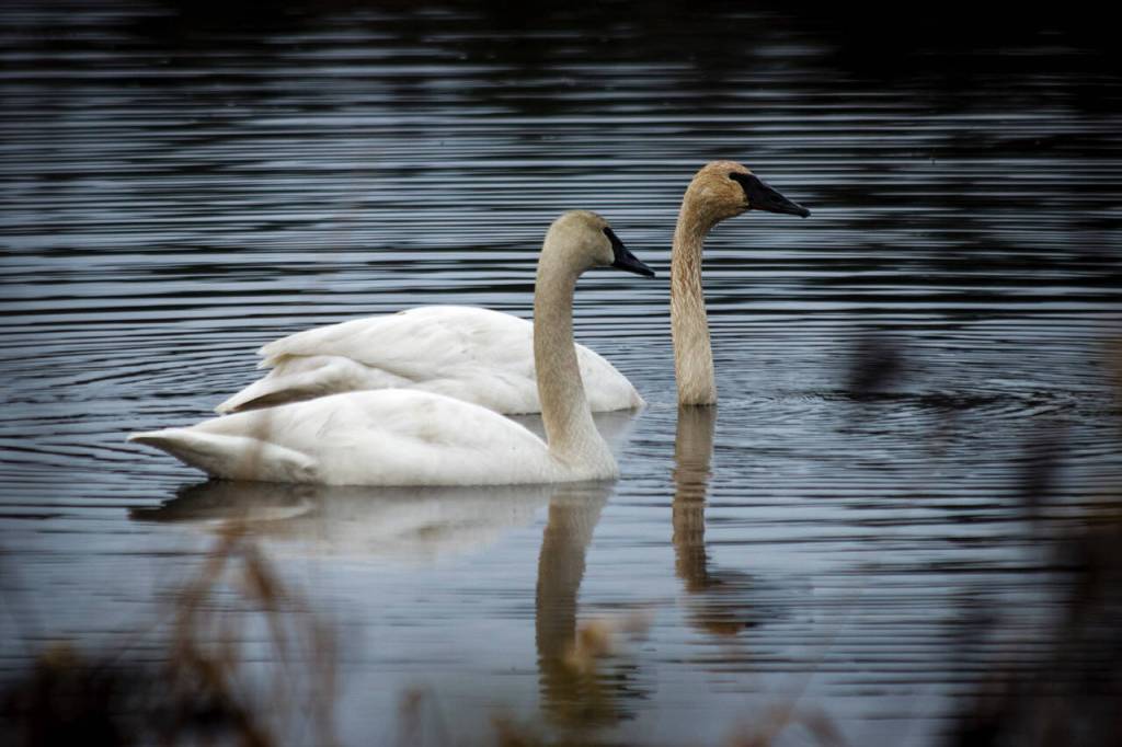 Welton said he couldn’t believe it when the second swan mysteriously appeared in the 10-acre wetlands of Glendale Valley. He explained the bird could have come from Skagit Valley, where many swans spend the winter, or from as far away as Southeastern Oregon or British Columbia. On Whidbey, the large birds have no direct predators.
