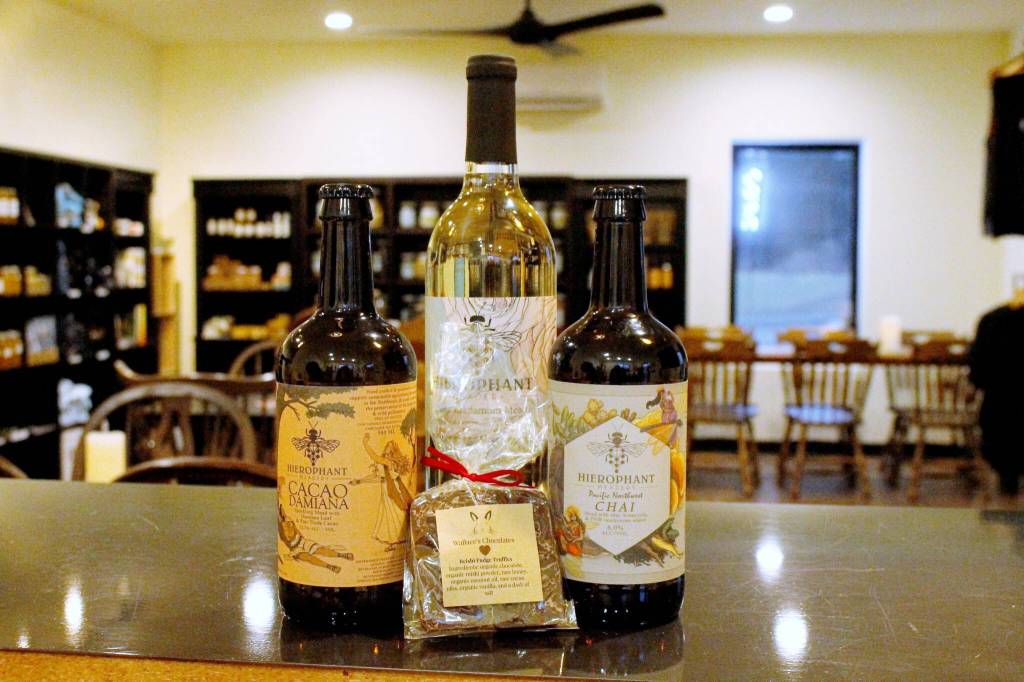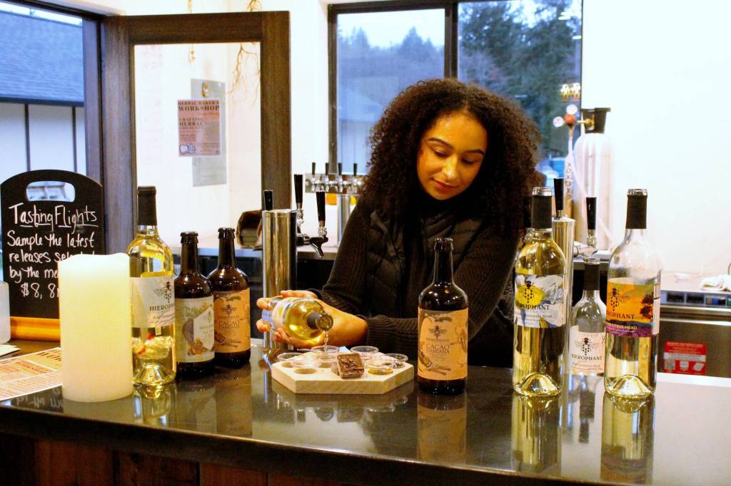 Hierophant Meadery, which Michelle Scandalis and Jeremy Kyncl opened in 2021 near Freeland, is brand-new to the tour. Scandalis said each ticket holder will receive a tasting flight of eight different meads paired with one Reishi Fudge Truffle from Wallace Chocolates, which are made on South Whidbey.