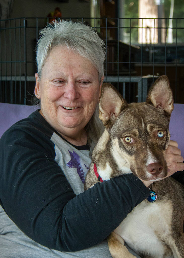 Meanwhile, Kiernan, along with Karen Wolf and her wife, Deb Wolf, and another volunteer worked round the clock with Trek to get him used to humans. Karen and Deb have since adopted Trek’s sister Tundra, who gets along with their pair of wire fox terriers.