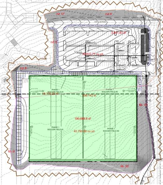 The 75-acre regional park planned for a city-owned property known as the Harbor Heights Sports Complex will eventually include a perimeter trail, a play area and a variety of sports fields. The first phase of park development, which consists of two soccer fields and 50 parking stalls, was originally budgeted at $1.65 million.