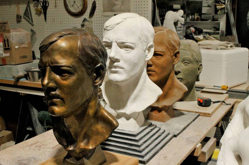 Finished pieces are all around Freeland Art Studios, including these busts by Lane Tompkins.