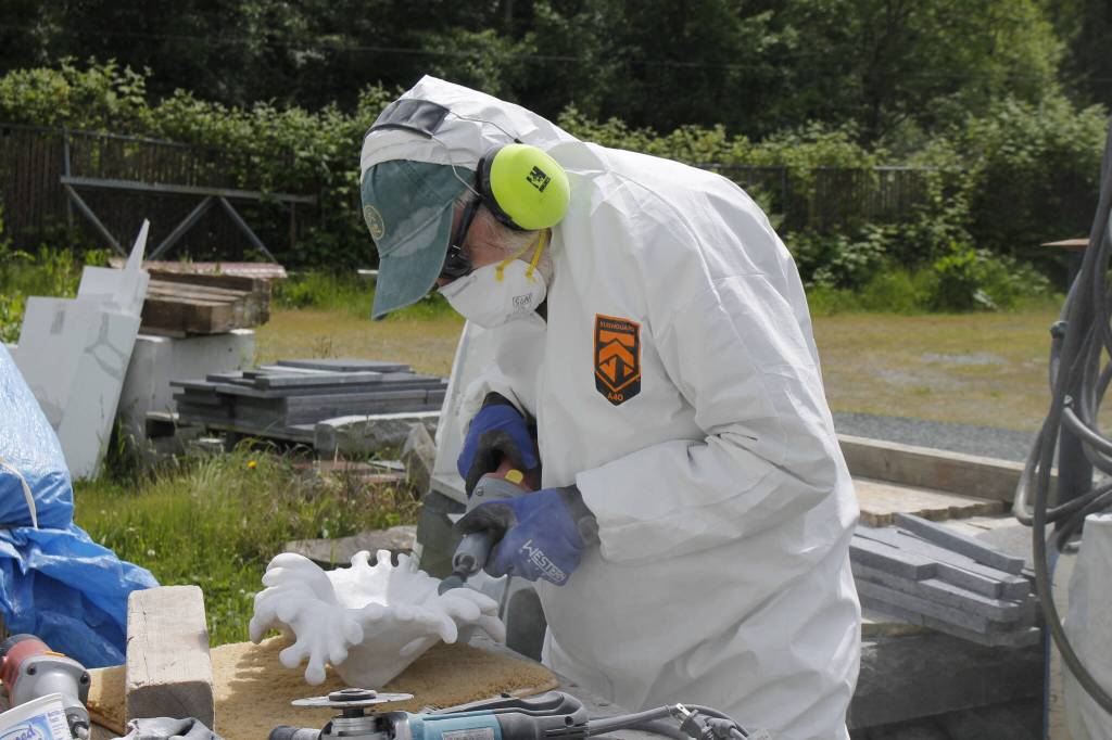 “That’s one of the advantages of working in a group studio, having other people around, especially when you’re a stone sculptor and things are really heavy or you need a second pair of hands when you have the forklift out,” Taves said.