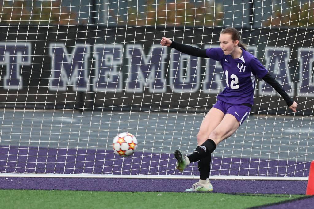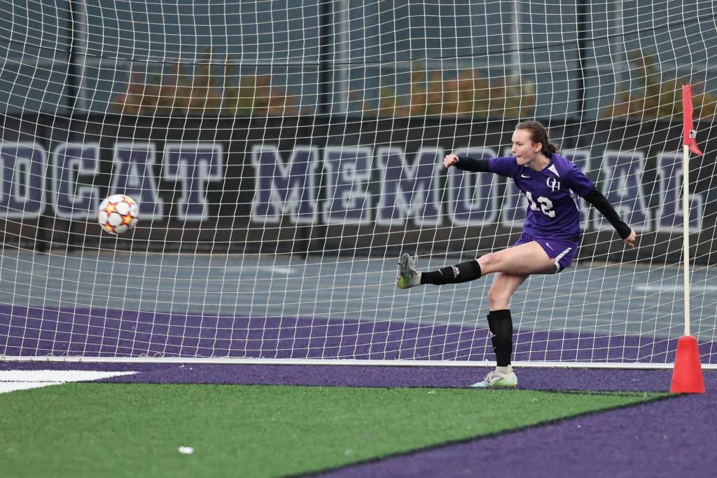 Carly Vangiesen scored on a corner kick in the second minute of play Thursday at Oak Harbor’s Wildcat Memorial Stadium. The Wildcat girls soccer team beat visiting Mount Vernon 3-1. Addisen Boyer scored the other two goals for the Wildcats.