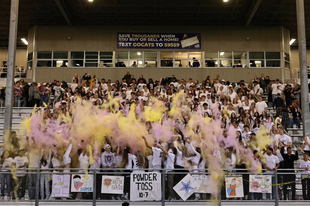 Oak Harbor High School had its homecoming football game on Oct. 7 at Wildcat Memorial Stadium. As has been tradition since 2015, students throw powder into the air to celebrate the event.