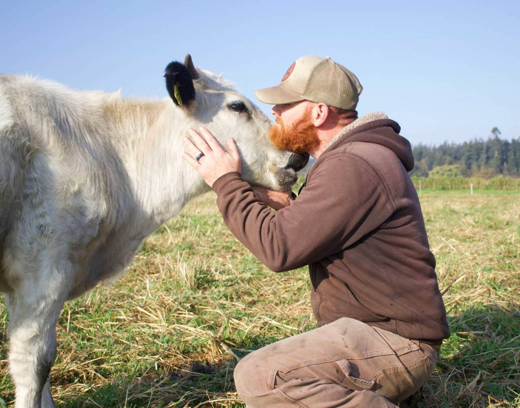 Like a boy with his Clifford-sized dog, Kyle Flack recently rubbed and nuzzled a steer named Moo while standing in a picturesque field on Whidbey Island filled with eye-catching white cattle.