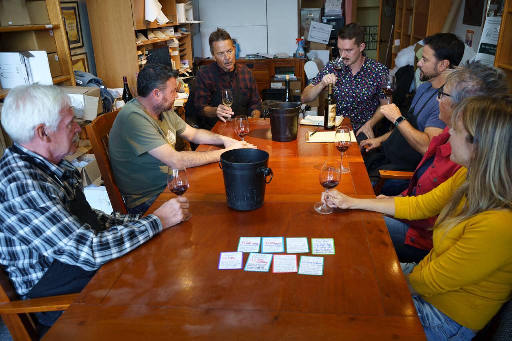 Every Wednesday around 9 a.m., the judges file upstairs to a small office above the grocery store, taking their seats at a worn wooden conference table and passing around wine glasses. To avoid getting a morning buzz, the table is also set with two metal buckets where the employees can spit the contents of their glass, if they so choose.