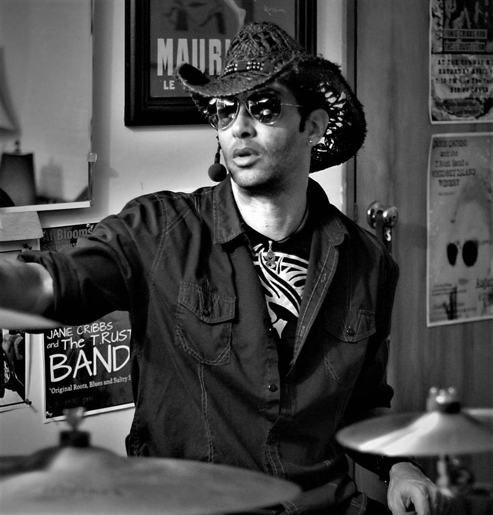 Reggiatore is Cribbs’ partner – in life and in music. They started out as a duo, simply called Janie and Joe. Holden asked to join the couple on stage one night at a show at Ott and Hunter. Cribbs described his drumming with their music as a match “made in heaven, arranged by angels.” Harshman, co-owner of Blue Sound Music in Langley and a member of several other local bands, is the most recent member to join.