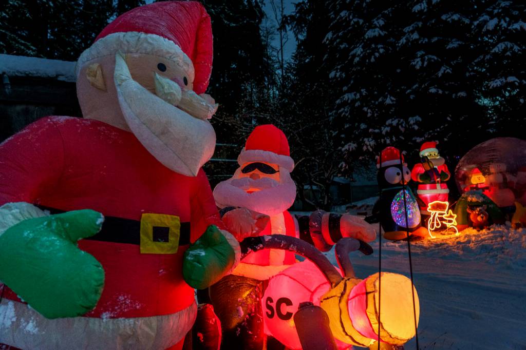 In the Scatchet Head neighborhood in Clinton, Jim Young has been making kids and grown-ups alike smile with his collection of blow-up penguins, snowmen and Santa Clauses. His house has become something of a landmark in the South Whidbey neighborhood as “that place with the inflatables,” which helps people who may have lost their bearings.