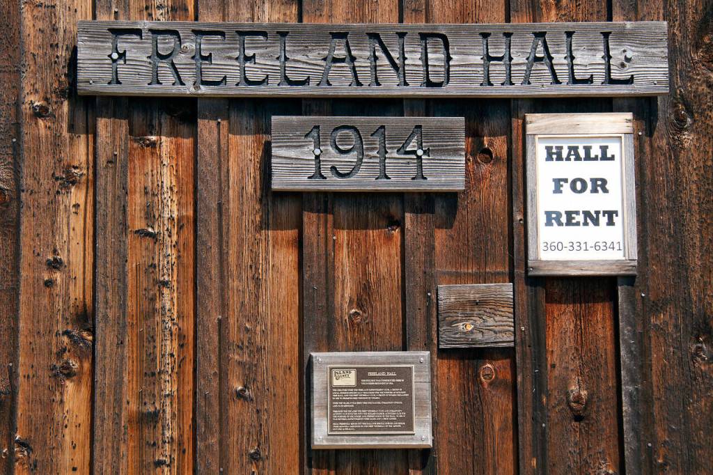 From the outside, Freeland Hall is an unassuming structure. Built in 1914, the 2,400-square-foot building resembles a giant cabin, fitting for its woodsy surroundings at the edge of Holmes Harbor.