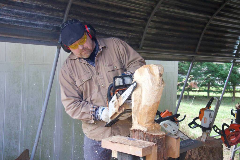 Since then, he has carved an eagle holding a fish, a pod of orcas and a turtle for a nonprofit in Montana.