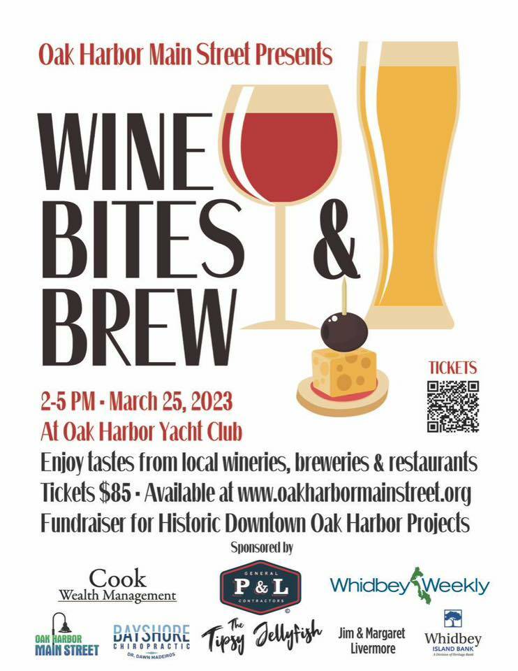 The Oak Harbor Main Street Association is hosting Wines, Bites and Brews from 2 – 5 p.m. on March 25 at the Oak Harbor Yacht Club. All proceeds will go to the Main Street Association’s Serendipity Lane project, ​​a walkable pathway connecting Pioneer Way and Bayshore Drive.