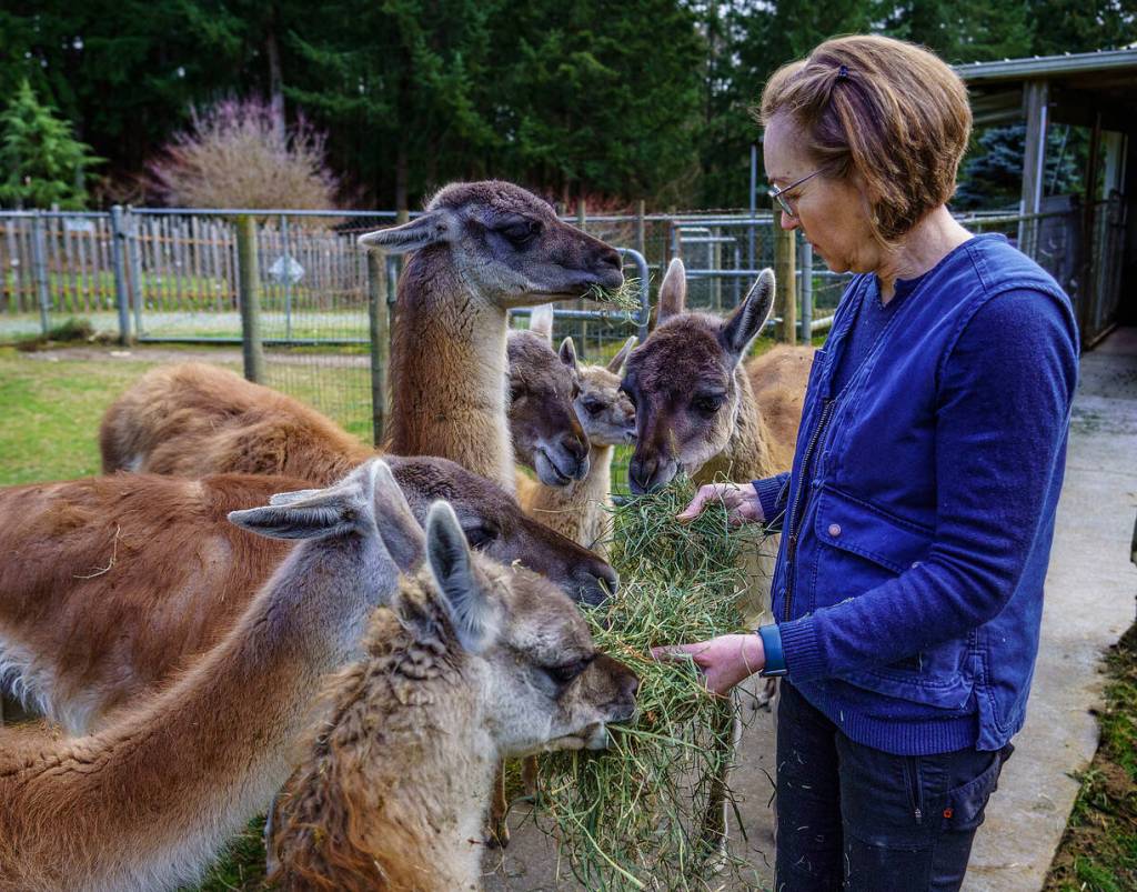 Lisa Mitchell and Greg Hudson are the keepers of a herd of guanacos, a camelid native to South America. Llamas, which resemble them, were bred from guanacos about 4,000 years ago.