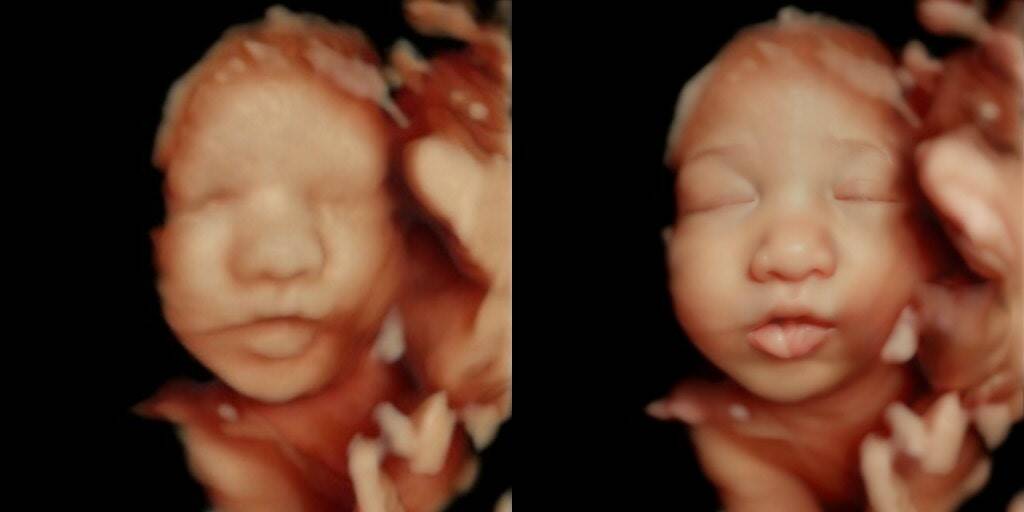 According to Kaur, 3D scans are still images, 4D scans come in both photo and video format, and 5D scans allow her to adjust the light to better see the baby. Unlike 2D ultrasounds, which show the baby’s organs and skeletal structure in black and white, these options make the baby look more realistic.
