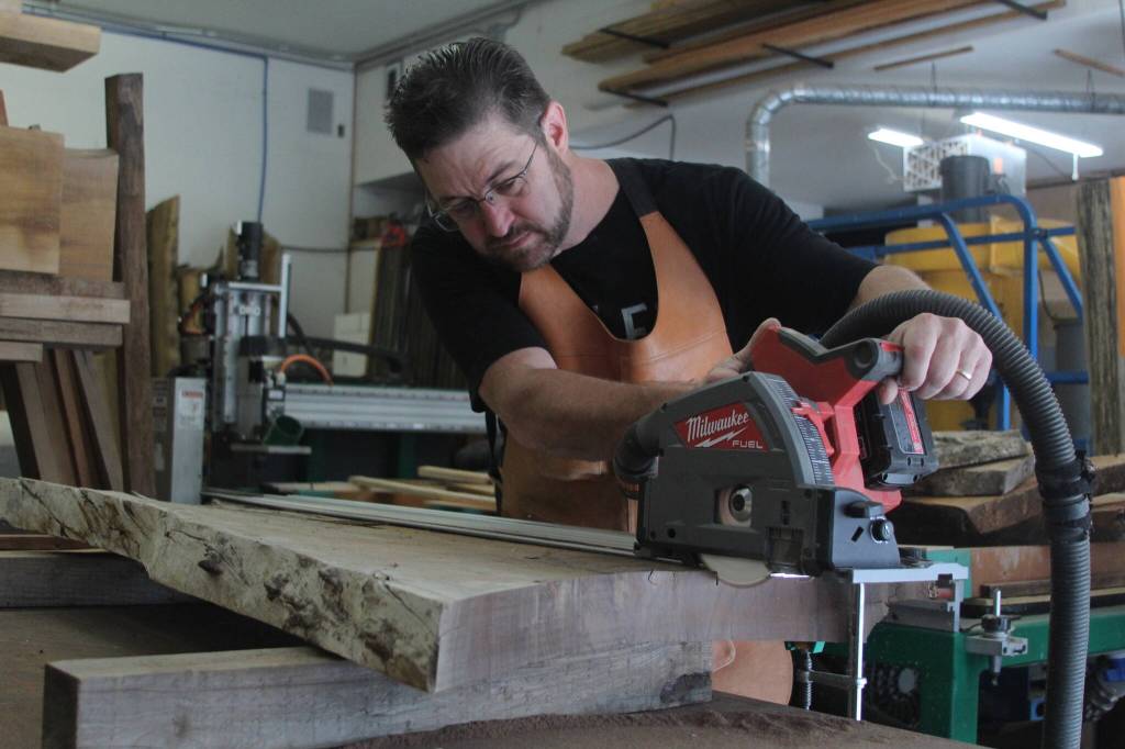 Balascio started his own business, Coastal Woodworks, in 2021 after several years in the corporate world. He specializes in “tree to table” furnishings. Balascio uses only naturally felled timber, and works with arborists on the island. Most of the time, people approach him with their own supply of wood and a vision for a project. One of his first projects involved Siberian elm that was planted in 1850 in Coupeville.