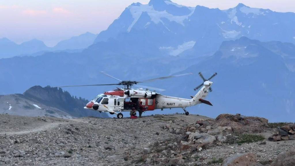 Later that afternoon on Aug. 28, NAS Whidbey’s SAR team received a report about a 19-year-old woman who broke her ankle on the Ptarmigan Ridge Trail at 6,000 feet above mean sea level, two miles north of Mt. Baker.