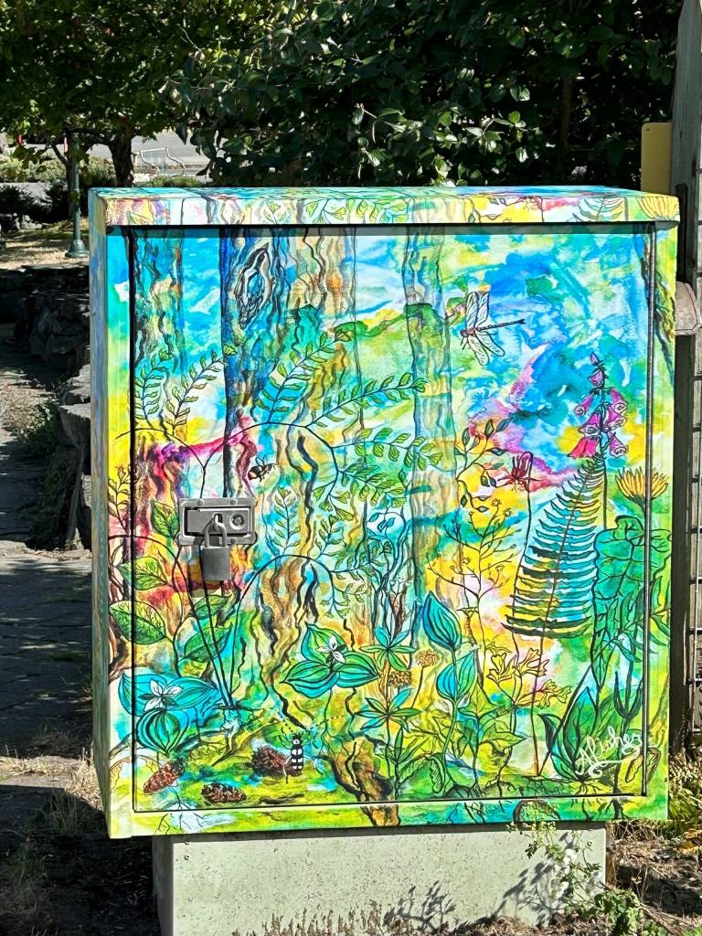 Hanson said utility boxes are normally seen for their functional purpose and look plain, but the project has been receiving positive responses, motivating the fund to plan for more utility box art. The utility boxes belong to Whidbey Telecom, which agreed to be part of the project, while the art was created by printing the artists’ work onto adhesive sheets that wrap around the box — printed by Humphrey Sign Company. Some residents, Hanson said, are even asking for their own utility boxes to be decorated.
