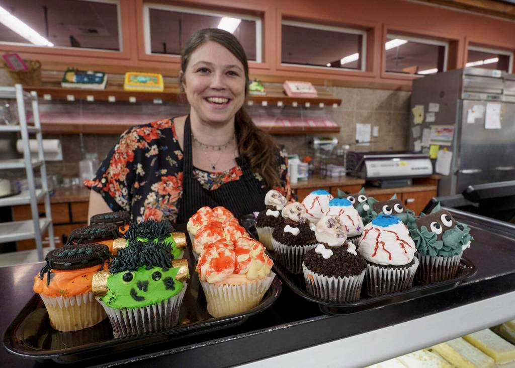 Around this time of year, Jennifer Holmes and Pia Stewart are creating cakes for the bakery in the Freeland grocery store that celebrate spooky holidays and commemorate the autumnal season.