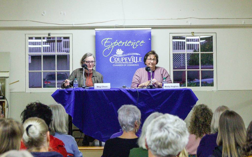Ferries, Growlers and deer birth control were among the topics discussed by incumbent Coupeville Mayor Molly Hughes and challenger Meg Olson at Wednesday’s mayoral candidates forum, where they answered questions submitted in advance by community members.