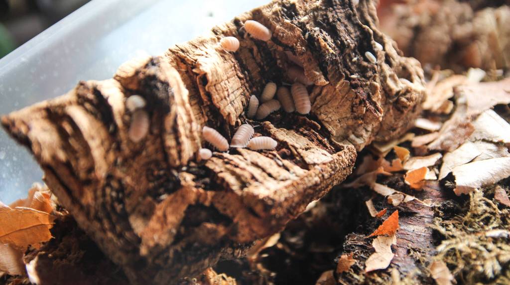 Jackson advises prospective or new isopod collectors to start small and to research how to take care of them. Some food, like dead leaves and wood, can be simply found on walks or by taking a short trip to the backyard. She advises against feeding them dog or cat food, as it can be harmful in the long term. To boost their health, she feeds her isopods cuttlebone, yeast flakes and even their distant relatives, shrimp.
