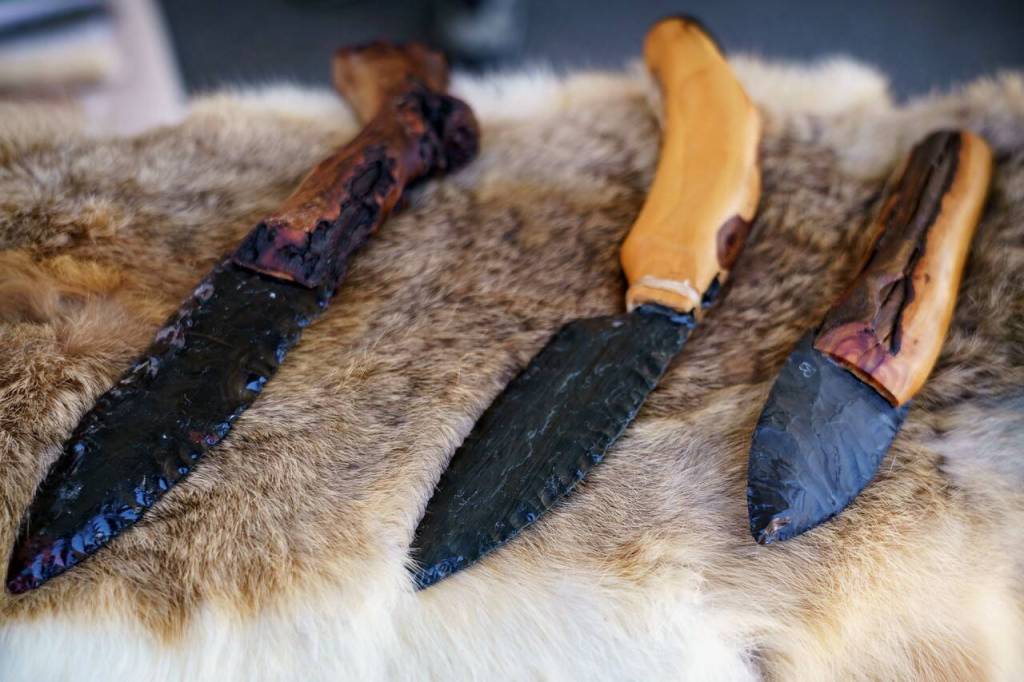 He gets his blades from Oregon obsidian and makes the handles out of local trees or driftwood. Knapping is easy, he said. The basics can be learned in 15 minutes. From there, it’s just about getting better, and better, and better.