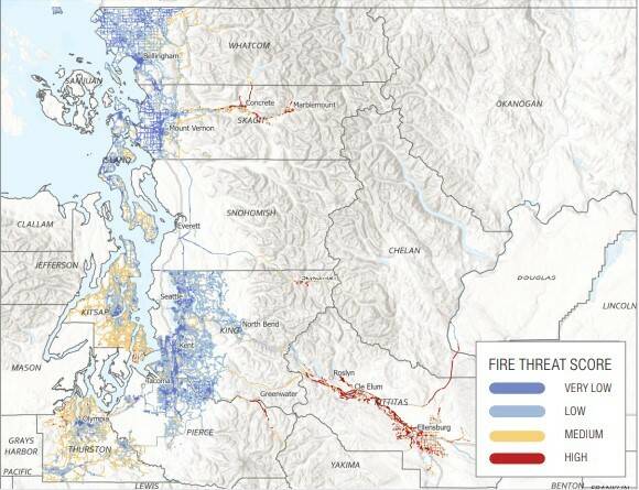 This might help protect areas of Whidbey Island that are at “medium” risk of wildfires, as illustrated in a risk map provided by the company.