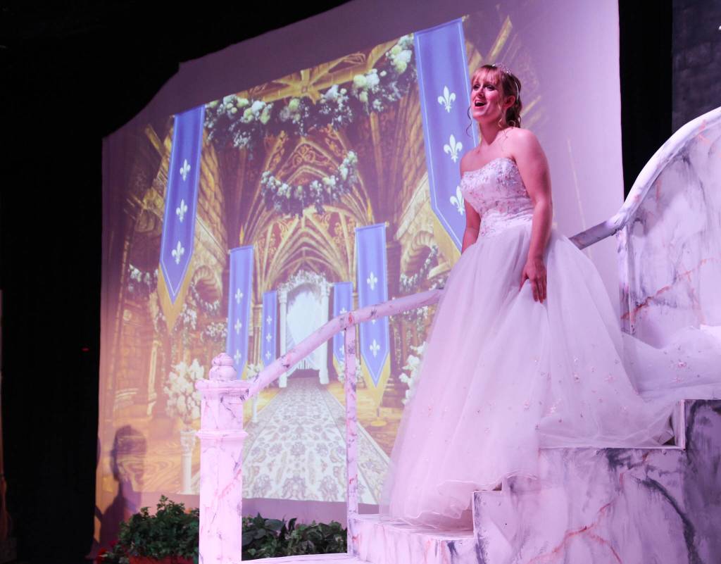 Karina Andrew, who plays the glittery and sassy Fairy Godmother, said she enjoys the feeling of power she gets from moving her wand around and summoning fog and a carriage and transforming an old dress into a ball gown — a trick made possible by Kim Dolan’s sewing skills.