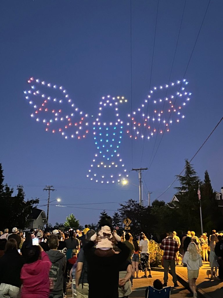 Whittington-Johnson was thankful that the Village by the Sea didn’t encounter any issues with its drones. In SeaTac, a Fourth of July drone show ended in an epic fail when the aerial vehicles lost signal and toppled into the lake.