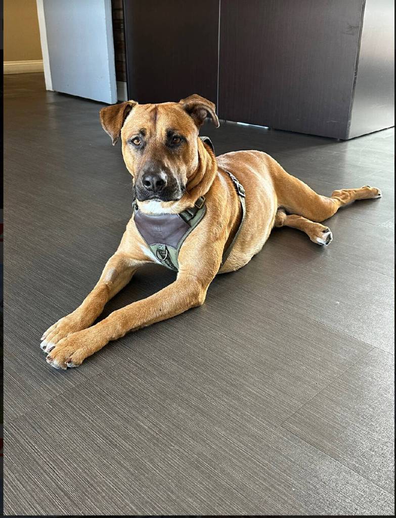At about four months old, Kiro wandered up McGuire’s driveway with a chewed leash and scarred-up legs. It was clear to her that he’d been “terribly abused and traumatized,” so she took him in.