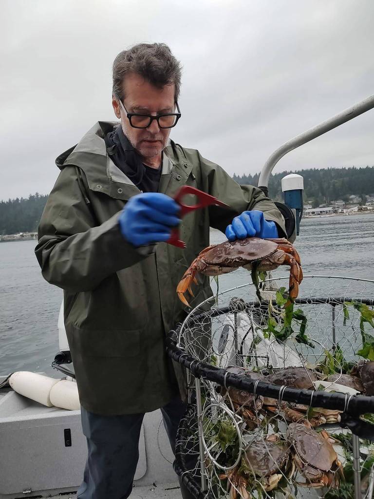 Whidbey Island Provisions co-creator Jean-Michel Pin crabs off Whidbey Island.