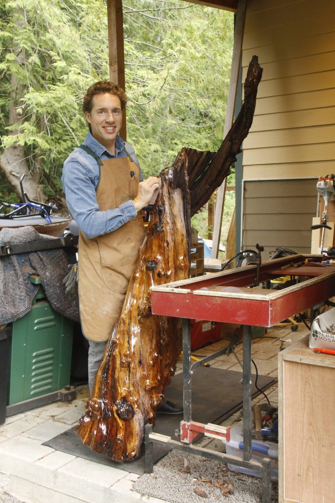 This week, Glen Pearson of Clinton was busy sanding the epoxy coating he applied to a twisted and gnarled piece of maple he affectionately referred to as a burn pile rescue. He saved the wood from its demise while visiting Shaw Island, where he found it.