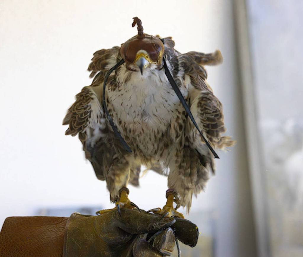 “They’re a very difficult hawk to train,” Pettis said of goshawks. “The hood became part of the training. While we were in COVID, when I put on my mask, I really thought about what a falcon goes through. I really felt safer.”
