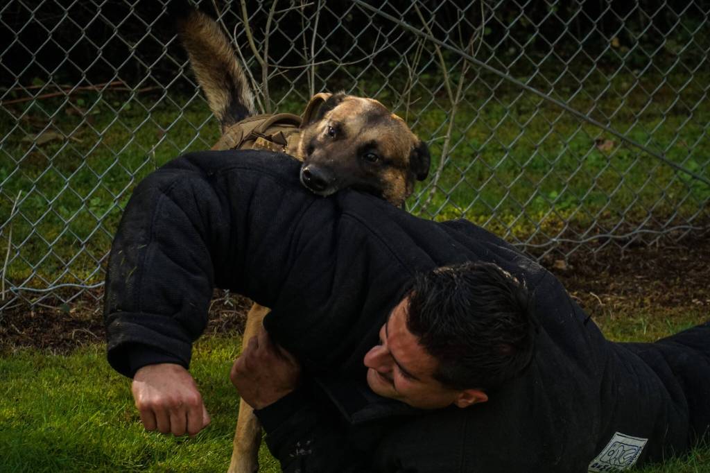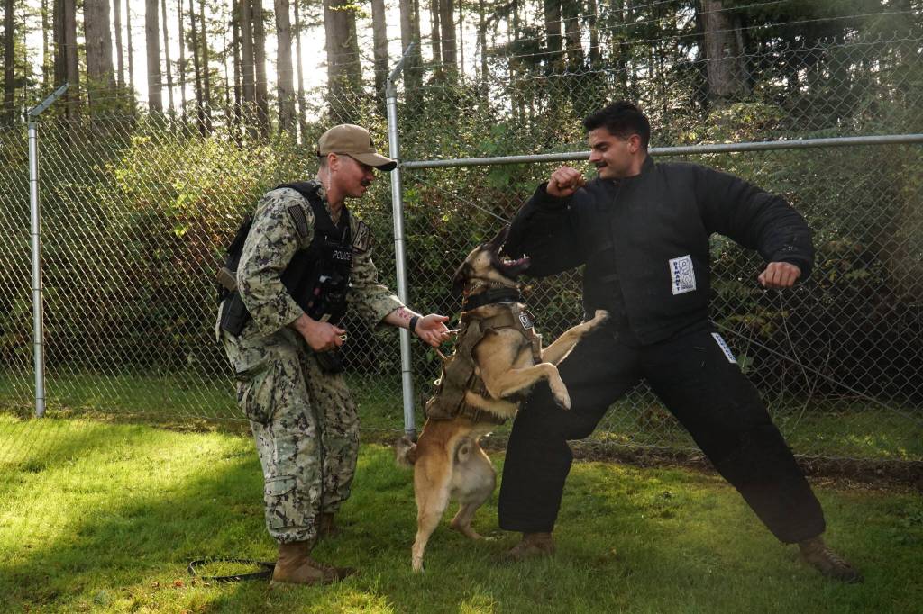 Whidbey’s military working dogs are not so different from other police K9s. Master-at-Arms Petty Officer First Class Tyler Grizzard said that they have single-task dogs that sniff during investigations or bite during conflicts as well as dual-task dogs that do everything.