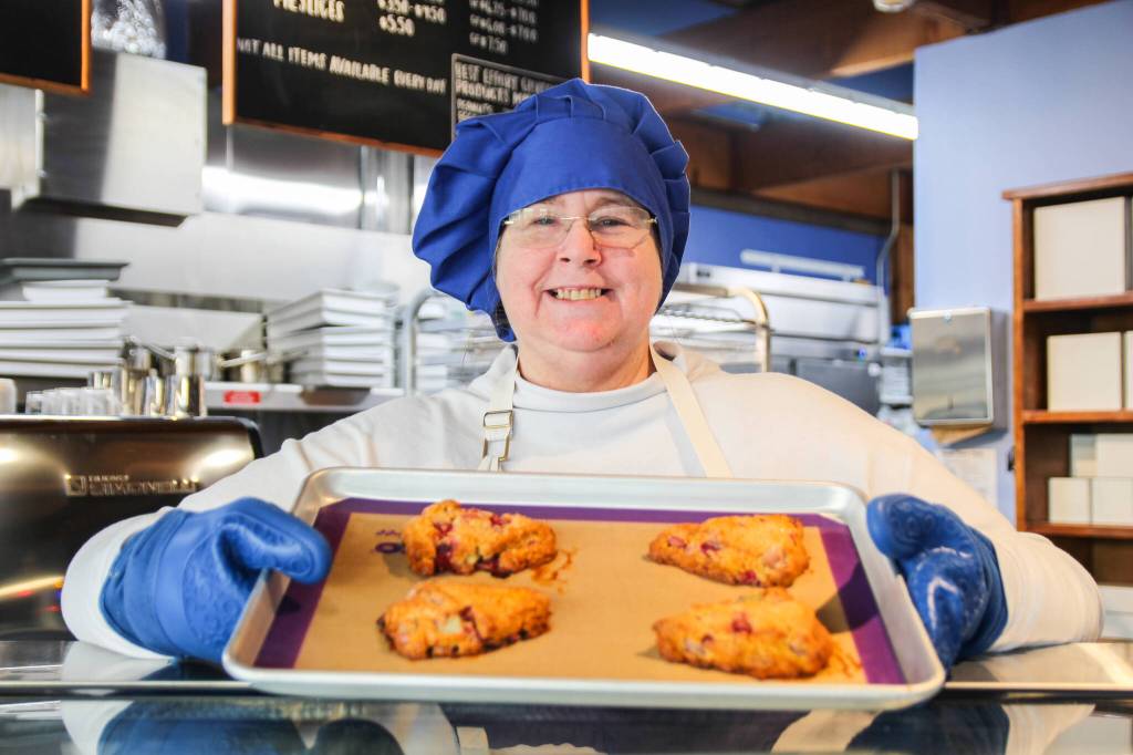Nestled inside, the bakery offers a sweet and savory menu that changes every week as staff learns what the community likes. Some past and reoccurring fan favorites include cinnamon rolls, raspberry custard cinnamon rolls, bacon cheddar biscuits, quiches, strawberry rhubarb scones, apple spice Bundt cakes, sour cream and chive scones and more.