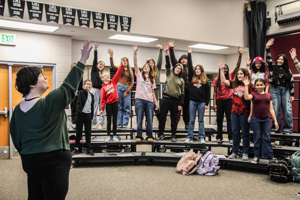 The North Whidbey Middle School Choir sings “Jambo,” a song in Swahili, a language spoken in East Africa.