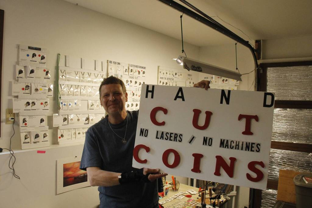 For the past year and a half, Chris Soukup has been transforming U.S. and foreign currencies into pendants. His intricate designs trace the shape of Whidbey Island in minute detail on the “tails” side of a U.S. quarter.