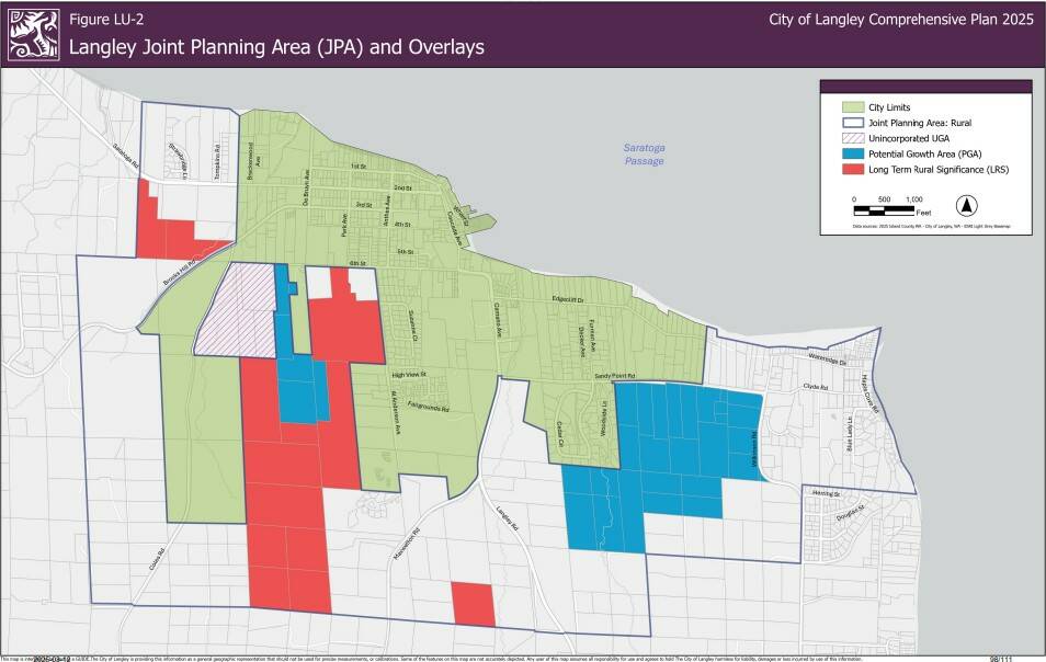 The city’s request was presented to the Island County Planning Commission and the Board of County Commissioners, who responded with questions and concerns about the new proposed PGA, including its lack of developable land due to steep slopes and its removal from city limits given the county’s investment in sewer infrastructure expansion in Langley, among other things.