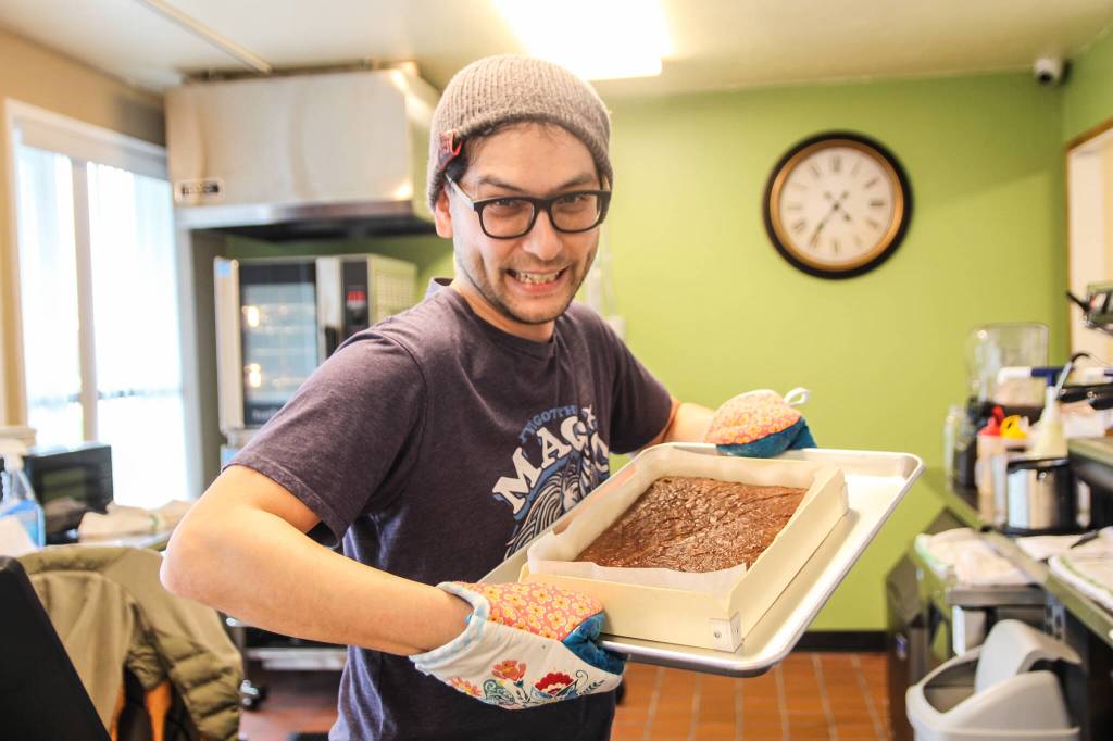 Now, despite their workday now starting at 4 a.m. and ending at 5 p.m., they can be seen bringing out trays of baked goodness with a big smile.