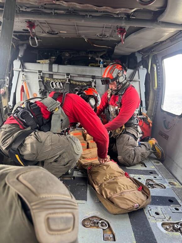 Once on the scene, the crew inserted its rescue crew members to assist with prepping the man for transport. The SAR team hoisted the injured soldier aboard just before 1 p.m. and flew him and an Army medic at the scene to Madigan Army Medical Center at Joint Base Lewis-McCord.