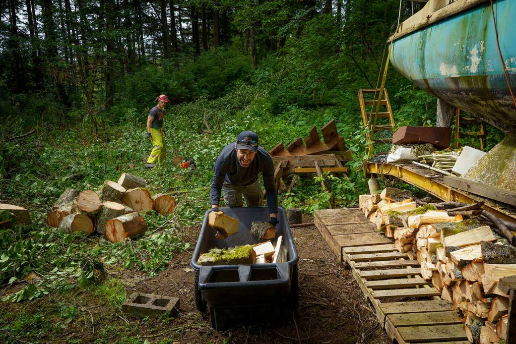 “I only wish I could get the names of all the people who were here so I could thank them,” she wrote. “My son now has no more excuse for not visiting because the stairs and deck have been made safe. That feels good. So many tons of rotten wood hauled out; I lost track of truckloads. I can now walk all the way around the house without having to bushwhack blackberries. The drain field has been liberated. The rhododendrons rediscovered. The downstairs door opens and closes without throwing out your shoulder. And all the knee high grass is mowed. So many small but not-so-small matters dealt with.”