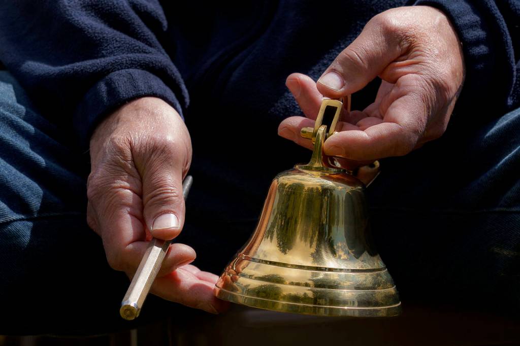 From left, Boy Scouts in the ceremony are Wyatt Walsh (in the beanie), Jonah Macarro, Carter Kalb (leading the ceremony), Parker Hammons (saluting), and Jasper Ohlin.