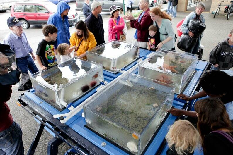 Mira Lutz, the marine technologist for the marine and coastal science program at Western Washington University, is excited to bring Shannon Point Marine Center’s outreach touch tank to the Oak Harbor Library. She pointed to the Kozloff Family Endowment Fund and Skagit Community Foundation for making the trailer possible.