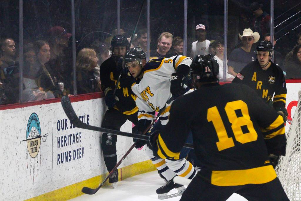Despite holding a couple of promising leads, the Navy Region Northwest hockey team fell 5-3 to the Army team on Saturday at the Kraken Community Iceplex in Northgate, amounting to what is now a 2-7 record all-time in the rivalry series.