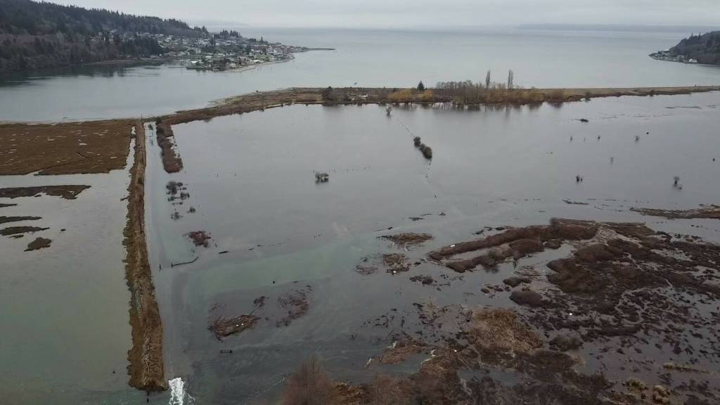 On South Whidbey, a project sponsored by the Tulalip Tribes focusing on Cultus Bay won a $314,395 grant. According to the project description, 100 feet of the dike and road where a tide gate was located “blew out” from flooding.