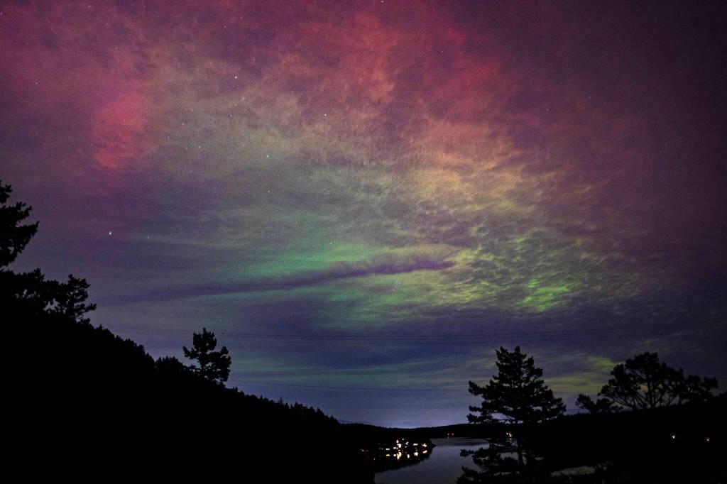 After sunset on Tuesday, Wednesday and Thursday night, the sky above Whidbey, as well as across Washington and parts of the U.S. and Canada, lit up in pink and green. The show was part of the geomagnetic solar storm known as the aurora borealis. The colorful lights became visible when the sun’s ejected charged particles met Earth’s magnetic field.